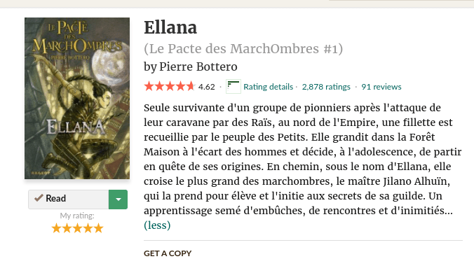 This first book, ‘Ellana’, and all the series linked to this book (there’s a whole world) got me started in this new period of my reading life. I remember I read this trilogy so fast, and at that time they were my favorite books ever. I thought Ellana was so cool, so badass, she was such an amazing character, a strong woman… I was completely smitten.