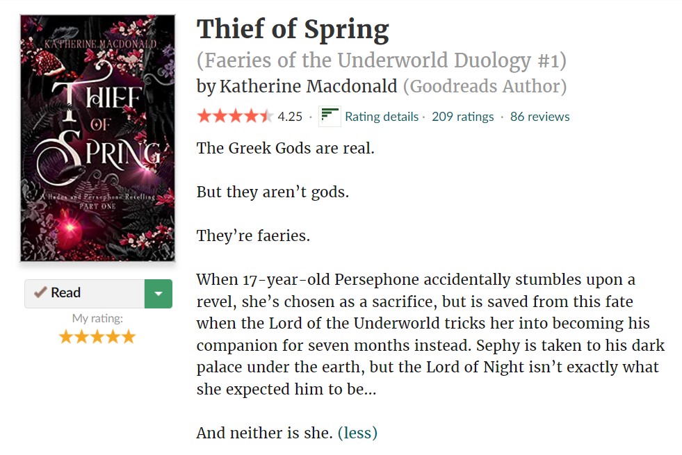 Additional note : The second volume, Queen of Night, is also amazing. Also I have the softest soft spot for Hades, dear god. Most beautiful Hades and Persephone retelling I’ve ever read.