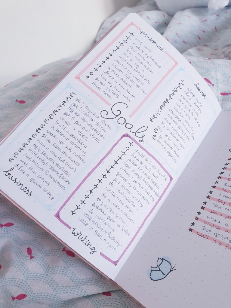 I’ve made a pretty spread in my bullet journal for my goals and bucket list for the year, and more than a checklist, I’m going to use it to give a direction to this year. It’s okay if I don’t do everything, but it would be so great if I manage to. That’s the kind of mindset I had when doing it.